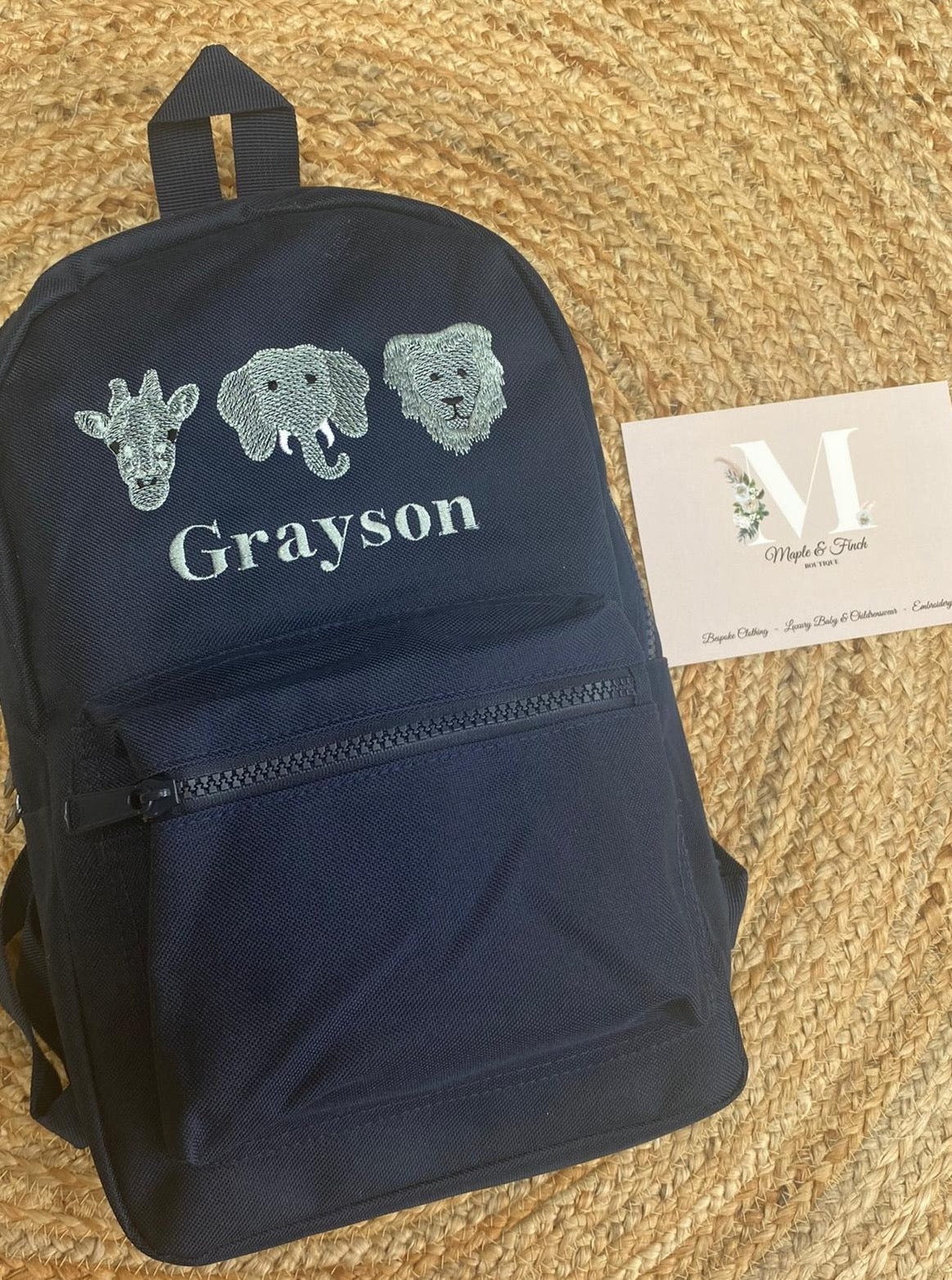 Our embroidered backpacks are available in a variety of designs—these are just some of our favourites! If you have a specific design in mind, just leave a note in the description or drop us a message us @mapleandfinchboutique and we'll do our best to match your needs.